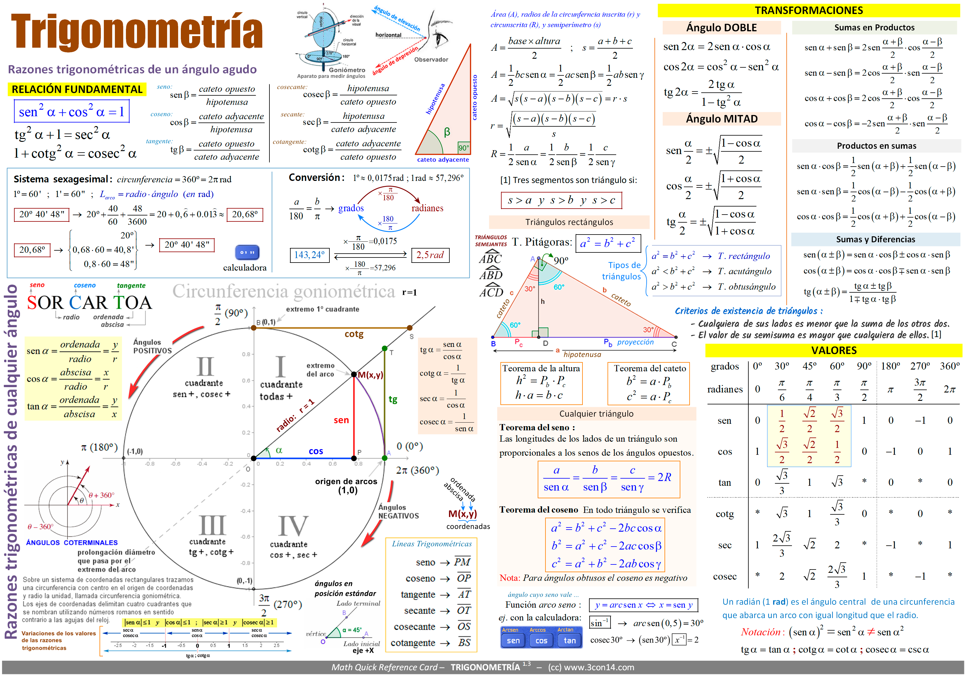 Trigonometría - Fórmulas I