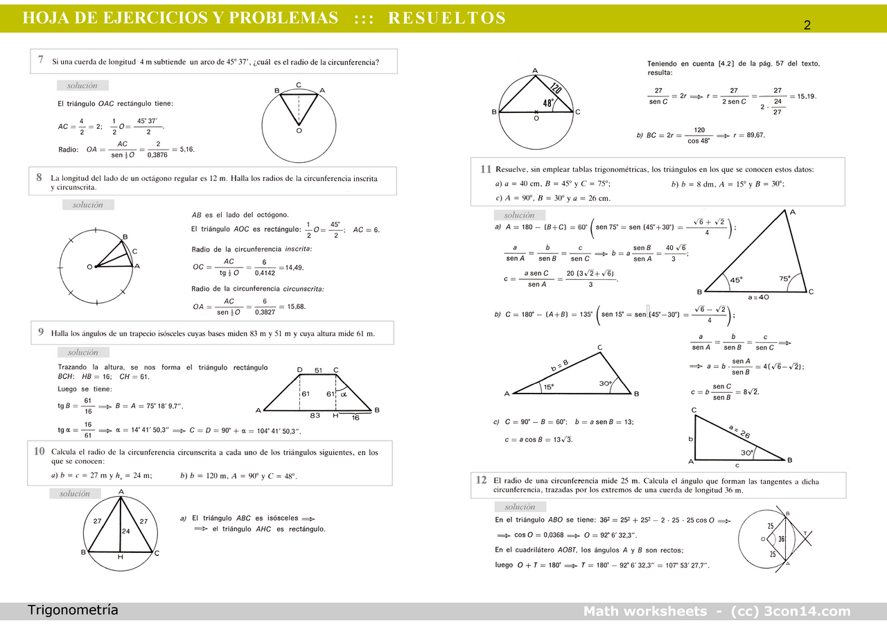 B · Hoja 001 - Ejer. y prob. resueltos de trigonometría Publicado en 02.- Resolución de triángulos Hoja 001 - Ejer. y prob. resueltos de trigonometría y sus aplicaciones